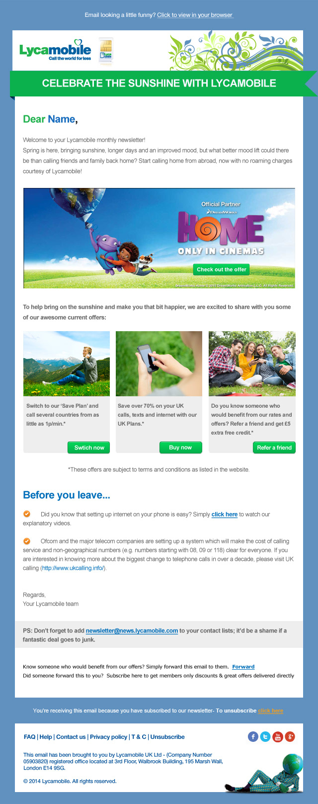 Dreamworks Home in association with Lycamobile - Web Banner w/ Call to action.