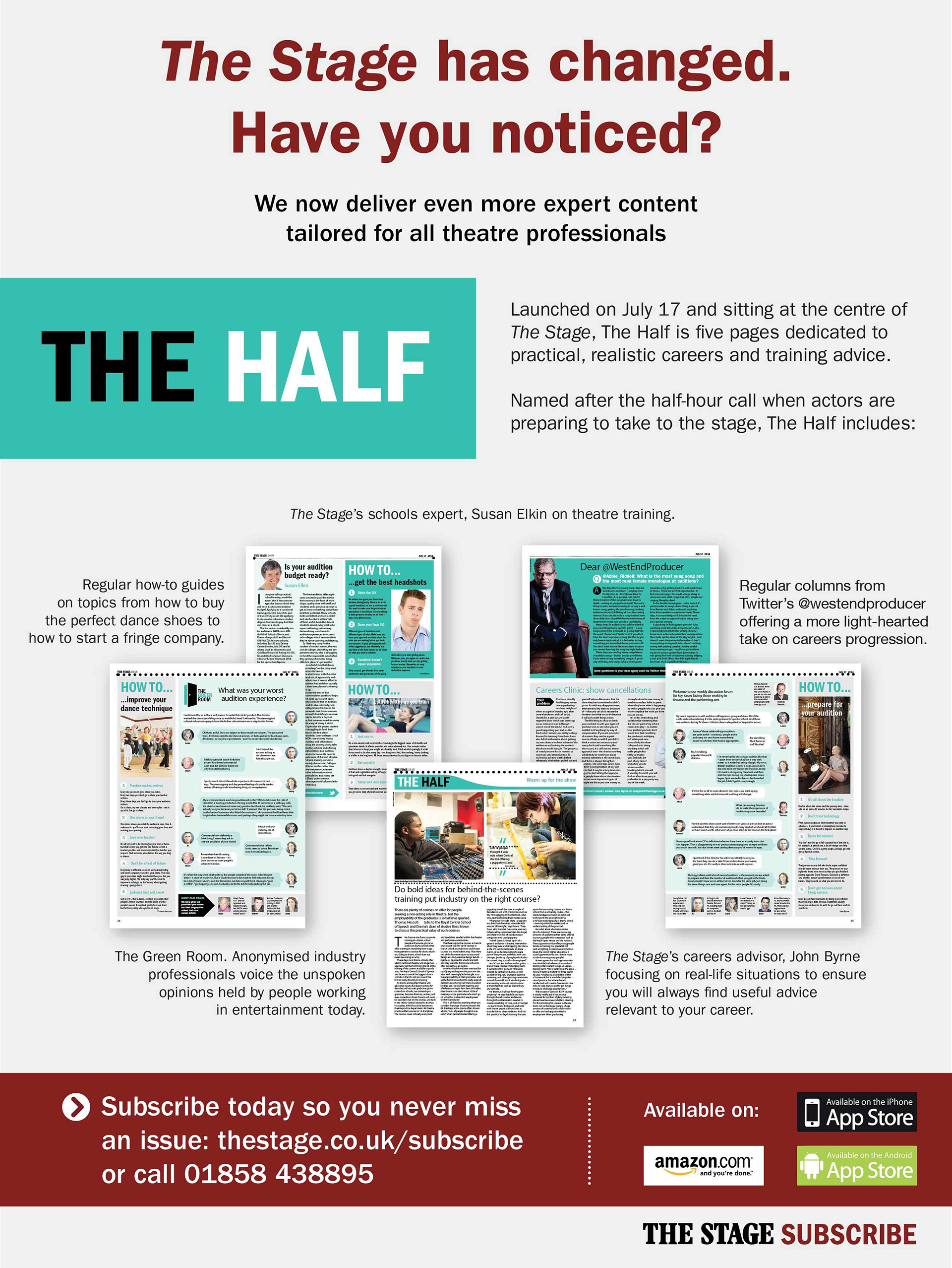 This full page advertisement and the banners that follow are examples of the designs I made while working with The Stage Media Company.